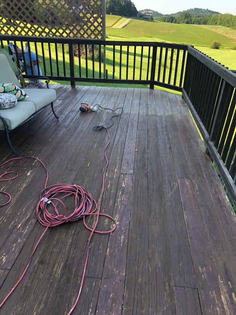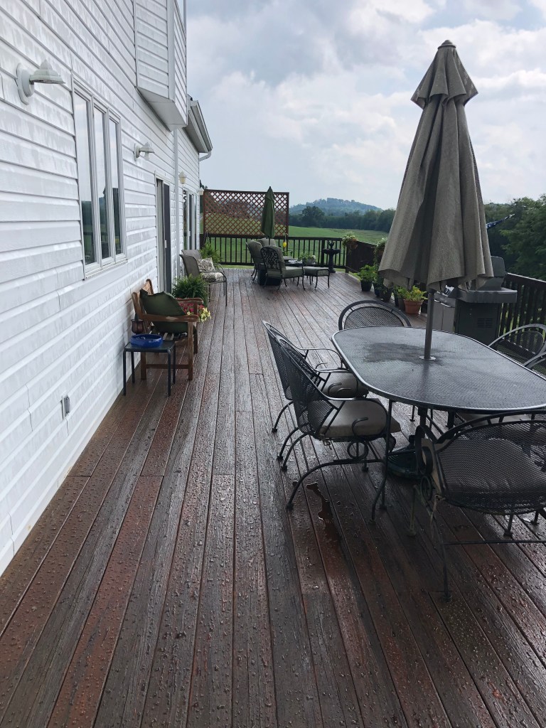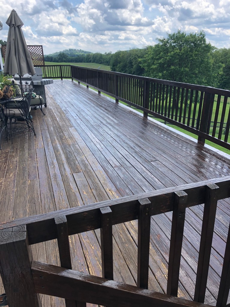 - History: To properly prepare and refinish approximately 1,000 SF of existing wood deck, steps and railing.
