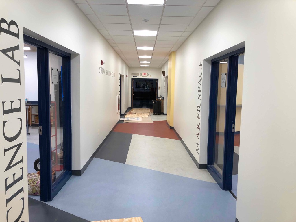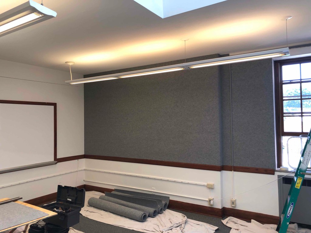H. Properly prepare existing walls and install Wall Carpet in Teacher’s Work Room.